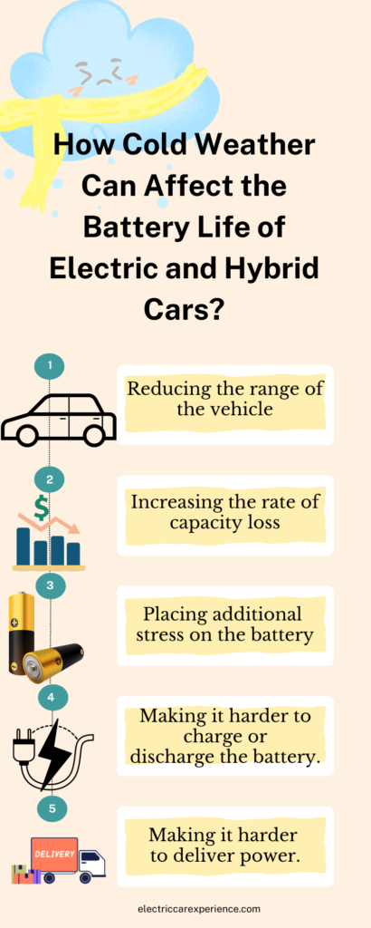 In summary, cold weather can affect the battery life of Electric cars and hybrids in several ways: