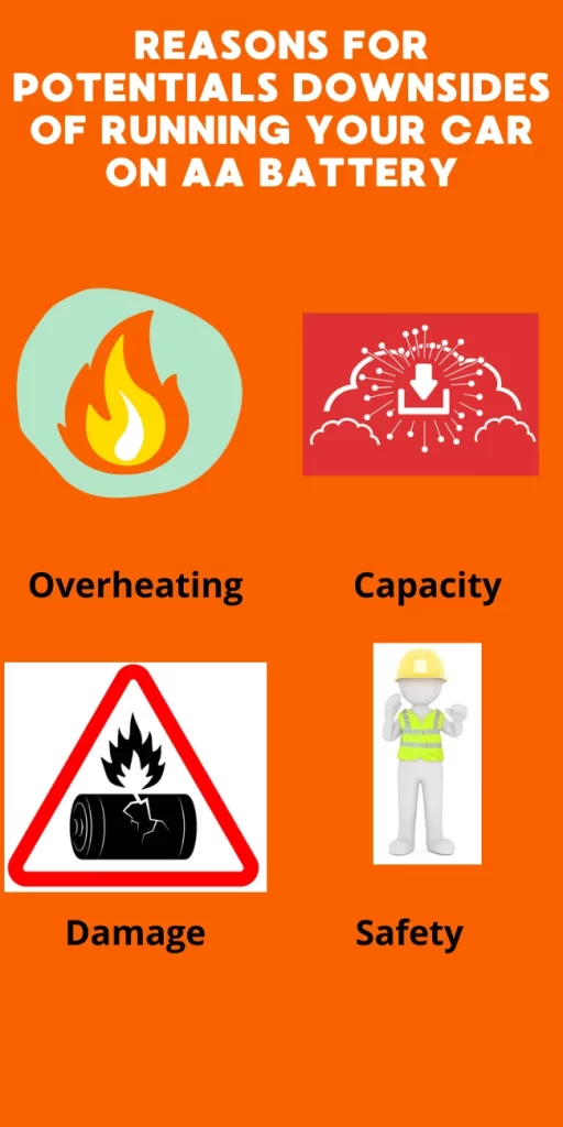 | Safety | There is also a safety risk associated with using AA batteries for heavy loads, as they can become hot and potentially start a fire if they fail. |
