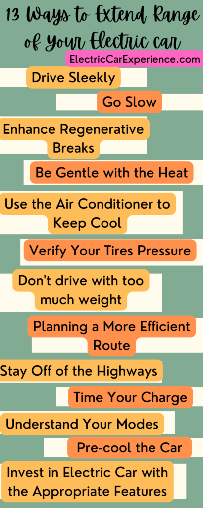 If your Electric car has an “Eco” mode, switch it on to accelerate more gradually; if it has a sport mode that makes things more exciting, leave it off. Simply slow down a bit; you’ll be astonished at how much further you can go at 65 mph compared to 75 mph.