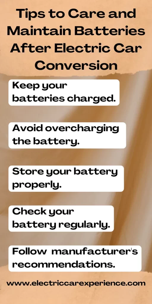 After an electric car conversion, proper care and maintenance of batteries are essential to ensuring a safe and reliable driving experience.