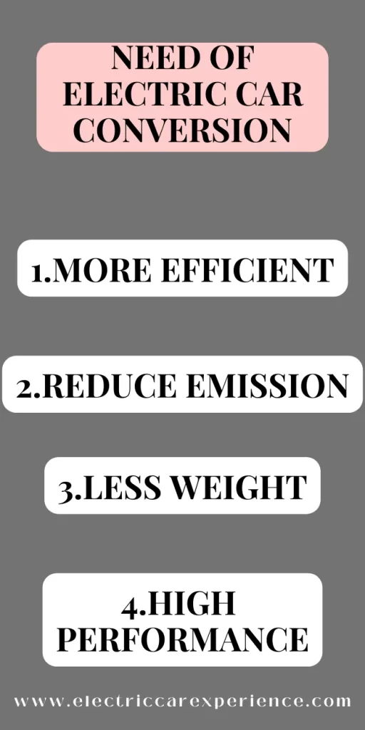 | Performance | Another reason to convert a car to electric power is to improve its performance. | Electric cars have instant torque, accelerating much faster than gasoline cars. |