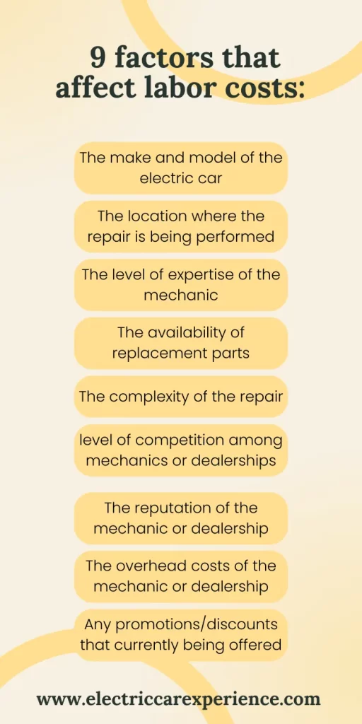 These factors include the make and model of the electric car, the location where the repair is being performed, the level of expertise of the mechanic, and the availability of replacement parts.