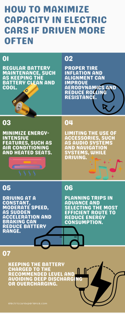 Maximizing battery capacity in electric cars, if driven more often, involves several critical factors like proper charging, battery temperature management, and driving habits.