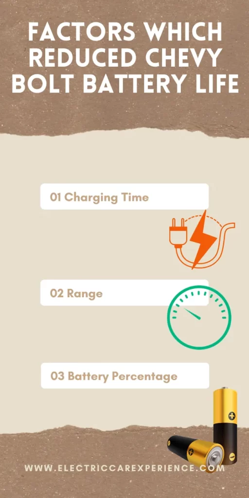 There are many reasons to reduce the chevy bolt’s battery life but we will focus on some common and most famous reasons that can reduce your chevy bolt battery life here is some common reasons charging time, range, and battery percentage. These were some reasons that reduced your chevy bolt battery life so, let’s talk about it.