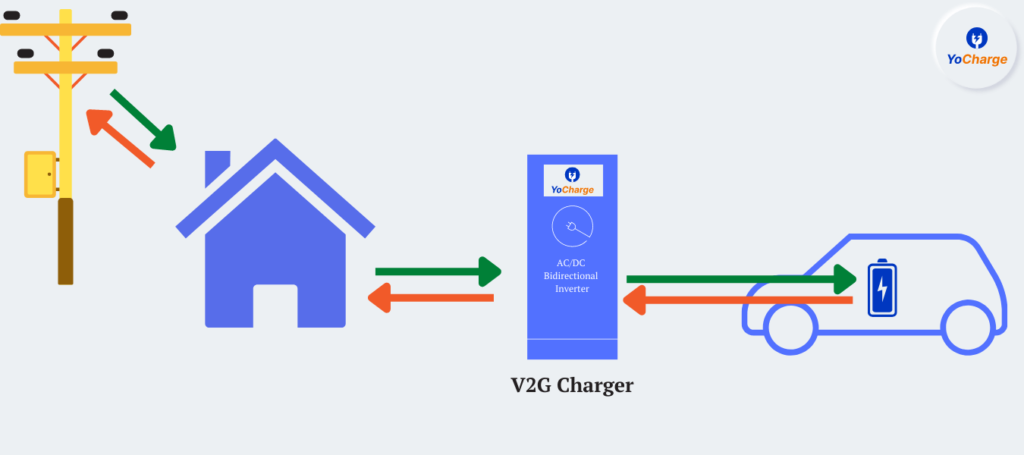 Coming to Vehicle to House (V2H) technology, the basic idea is to power your house with your electric vehicle battery.