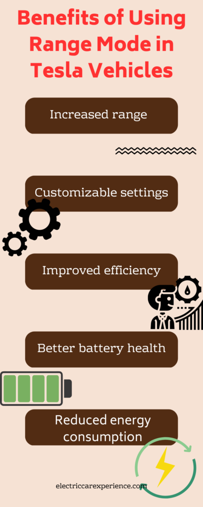 In Tesla vehicles, using Range Mode can have several advantages, including: