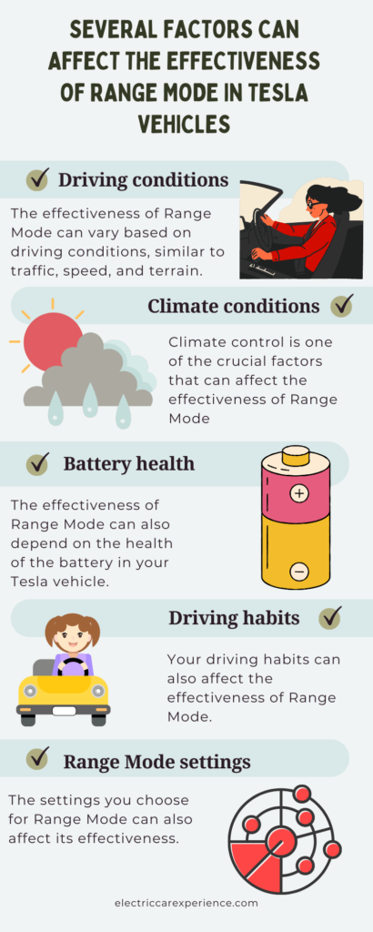 Several factors can affect the effectiveness of Range Mode in Tesla vehicles. Here are some of the crucial factors to consider:
